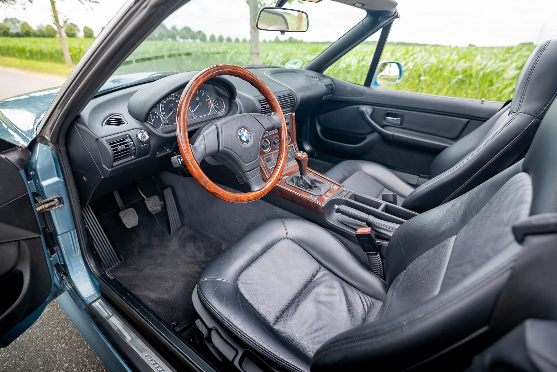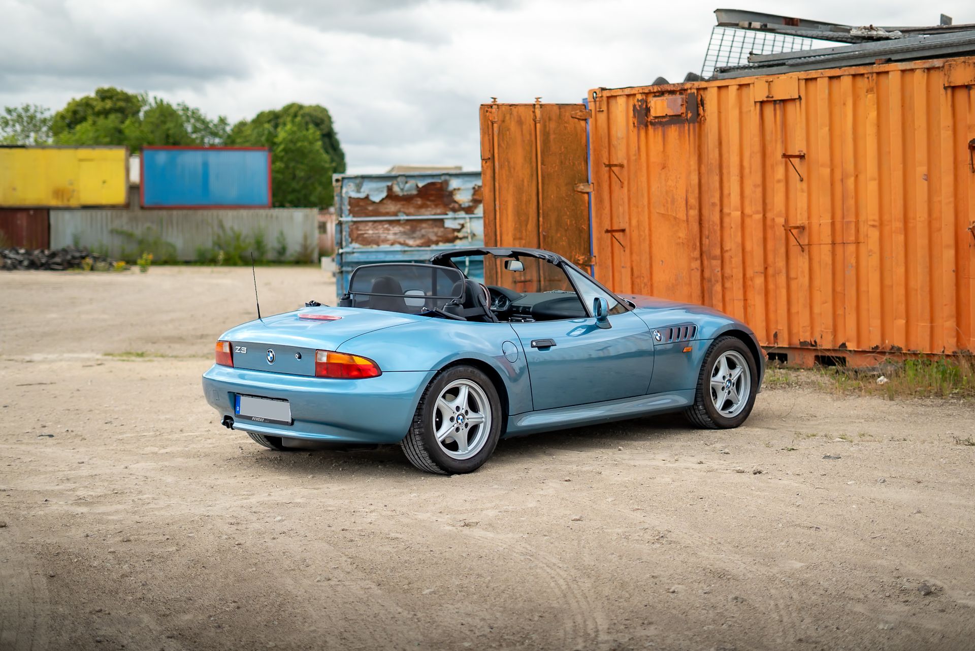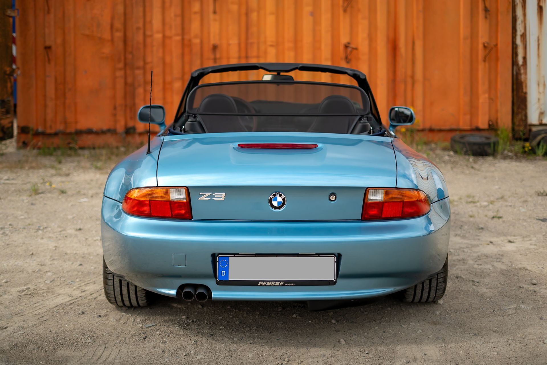 Potenter Sport-Roadster mit Kultstatus. BMW Z3 Roadster in der aus dem James Bond Film "Golden Eye" bekannten Exterieurfarbe Atlanta Blau mit einem Interieur in Leder Oregon Schwarz. Verdeck Sonnenland Blau neu vom Sattler in 2022. Fahrzeug in begehrter 2.8 Liter Ausführung, erkennbar u.a. an den breiten Kotflügeln am Heck. Seidenweicher, herrlich elastischer Reihensechszylinder-Motor vom Typ M52B28 - Single Vanos und 192 PS, gepaart mit einem sportlich kurz abgestimmten 5-Gang Schaltgetriebe. Kenner wissen diesen Antriebsstrang zu schätzen. Sonderausstattung exemplarisch: Sperrdifferential, Fensterhebervorn elektrisch, Sitzheizung Fahrer und Beifahrer, Bordcomputer, M Sportfahrwerk und besonders vornehm - Edelholzausführung inklusive Sport-Lederlenkrad.