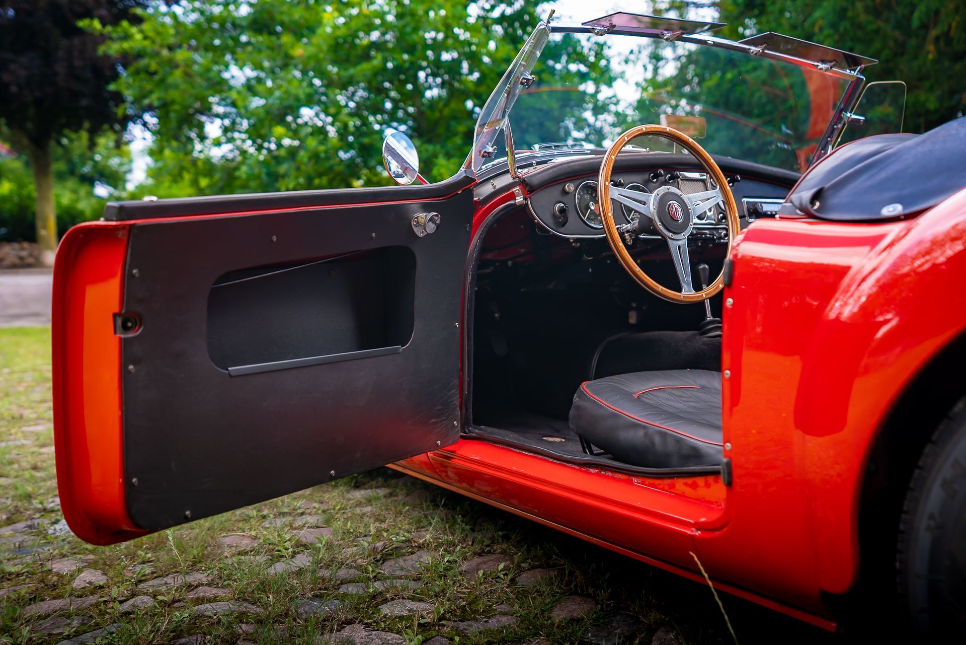 Klassischer britischer Roadster mit viel Charm und hohem Sympathiefaktor. MG A Roadster in Chariot Red mit schwarzer Lederausstattung (Keder Rot). Import 2010 aus den USA nach Dänemark, dort sehr aufwändig restauriert. Seit Anfang 2013 in Deutschland und seit Ende 2013 beim jetzigen Eigentümer. Liebhaberfahrzeug in gepflegtem Zustand, optisch wie technisch.